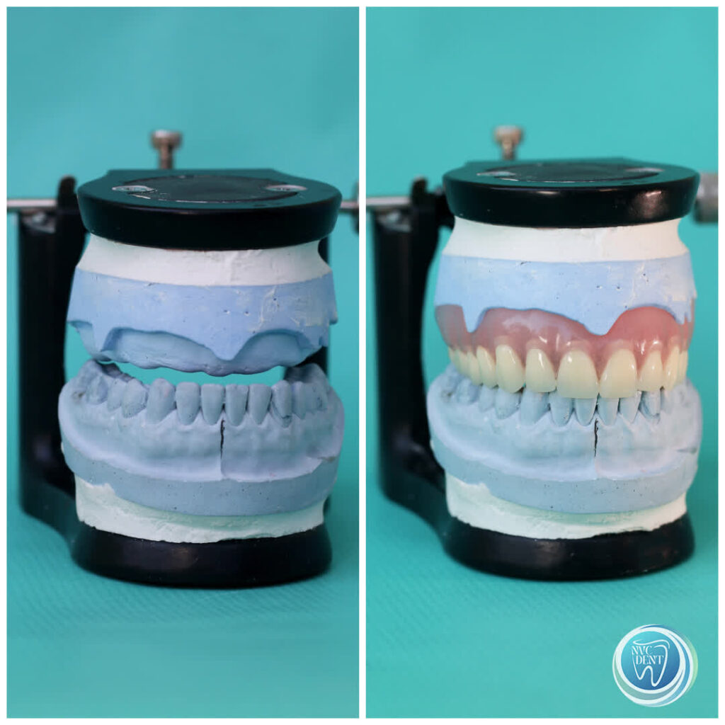 este o piesă protetică mobilă care poate înlocui o întreagă arcadă dentară.